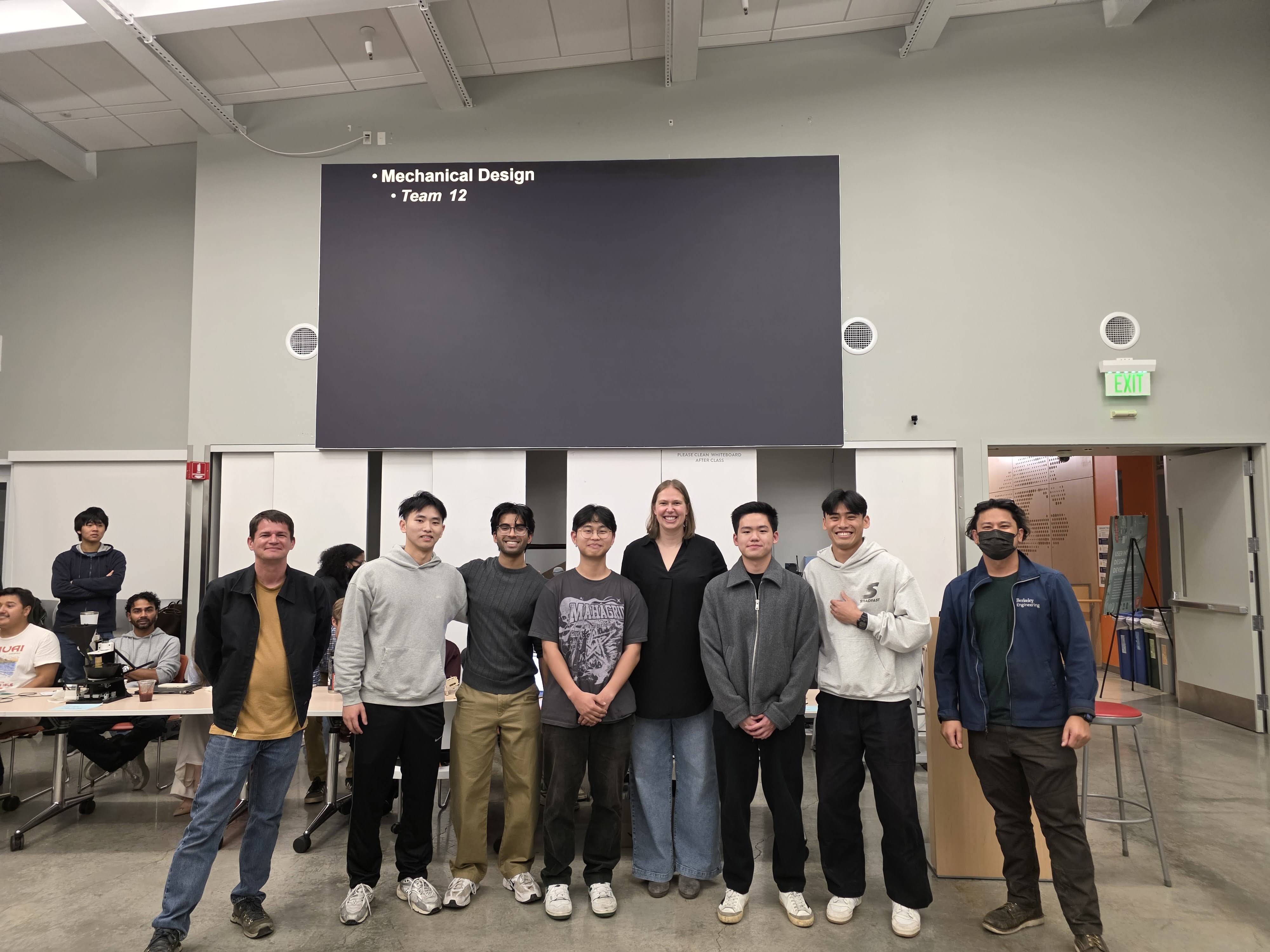 Through the ME102B Project, I learned how mechanical design, electronics, and software must work together for a system to function reliably. I improved my skills in component integration by wiring motors, sensors, and drivers correctly and ensuring they communicated properly with the microcontroller. I also strengthened my software programming skills by implementing a state machine that used sensor data to control timing, motion, and safety behaviors during the jump cycle. Our team also won the Best Mechanical Design Award!